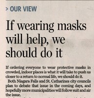 Region to consider making masks mandatory in Niagara : special meeting of regional council called for Wednesday