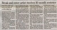 Break-and-enter artist receives 10-month sentence : Crime hits at the very core of our sense of security, judge says