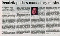 Sendzik pushes mandatory masks : St. Catharines mayor wants Niagara to follow Toronto and pass bylaws