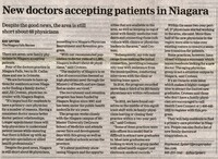 New doctors accepting patients in Niagara : despite the good news, the area is still short about 68 physicians