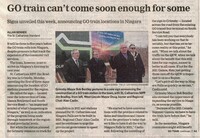 GO train can't come soon enough for some : signs unveiled this week, announcing GO train locations in Niagara