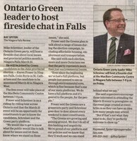 Ontario Green leader to host fireside chat in Falls