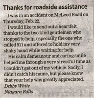 Thanks for roadside assistance