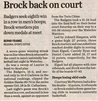 Brock back on court : Badgers seek eighth win in a row in men's hoops : Brock wrestlers pin down medals at meet