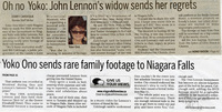 Ono, Yoko / Lennon, John / 40th Anniversary of her honeymoon / Video Footage / Colclough, Bill / Lundy's Lane Historical Museum / Iorfida, Dean/ Salci, Ted / Beatles