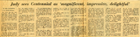 Judy sees Centennial as 'magnificent, impressive, delightful'