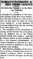 St. Andrew's Church Ladies' Aid, Sunshine Circle dance, Mrs. Kinzinger's tea, Mrs. Butter's tea, Bridge parties per Mrs. Ambler, 7 Knitting Circles, Red Cross - Mrs. Ward's Class Kitchener St. School, Miss B. Urquhart, Daughters of St. George, Glenview School, Mrs. G. W. Allen, Kate Hughson, Mrs. Thos. Reynolds, Collegiate Institute Literary Society tea, Miss E. Lundy. River Road, Mrs. Gunning, Harry Shain, K. Seigel, Miss A. L. Butters, Mrs. Fitzgerald