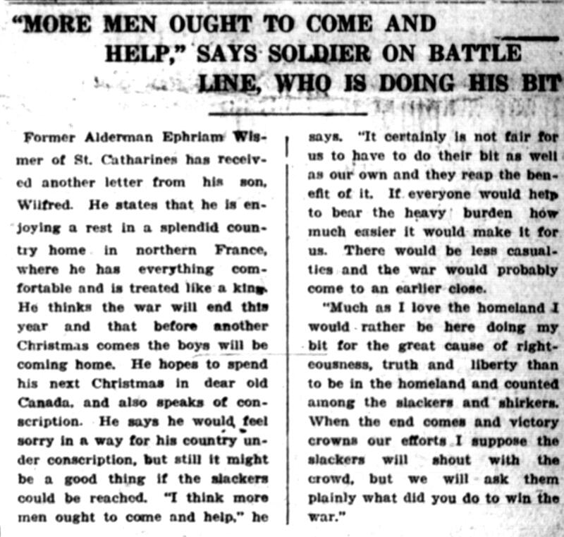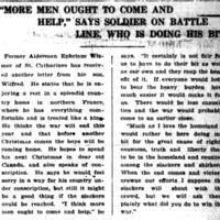 - "More men ought to come and help" says soldier on battle line who is doing his bit