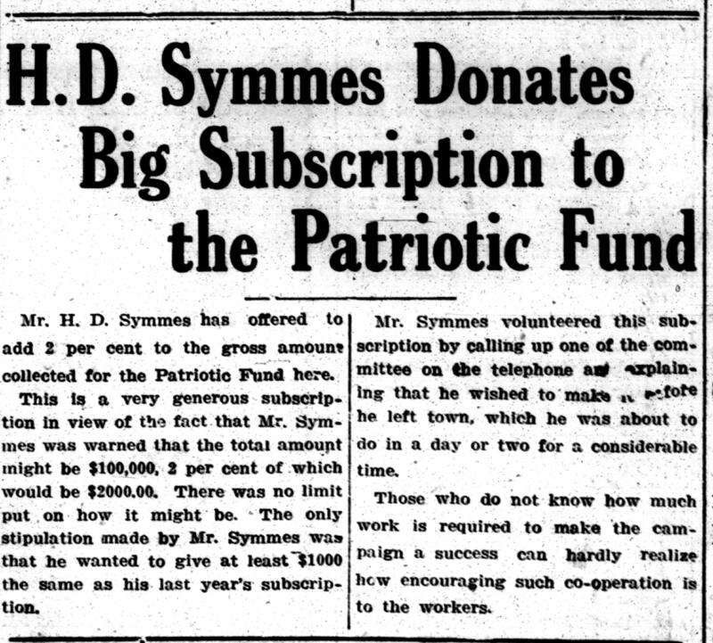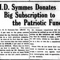 - H.D. Symmes donates big subscription to the Patriotic Fund