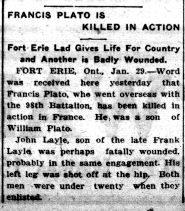 - en-CA 98th Battalion / France / William Plato / John Layle / Frank Layle /