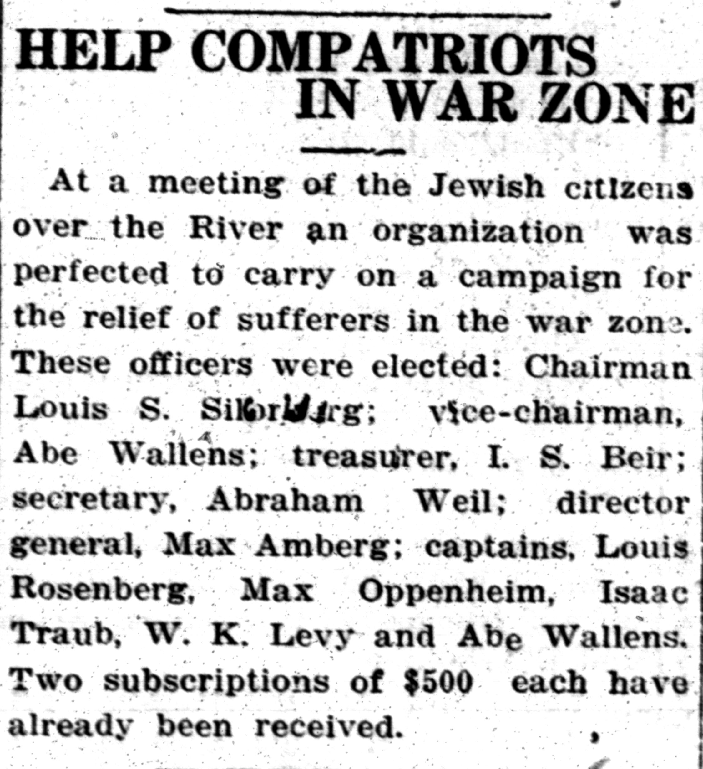 - en-CA Louis S. Silorberg / Abe Wallens / I.S. Beir / Abraham Weil / Max Amberg / Louis Rosenberg / Max Oppenheim / Isaac Traub / W.K. Levy / Jewish citizens / Fundraising