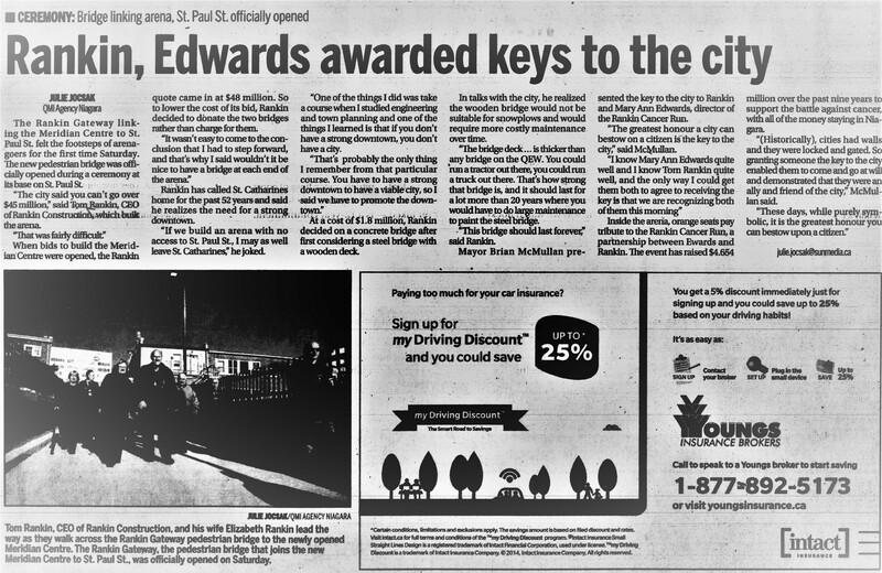 - Rankin, Edwards awarded keys to the city : Bridge linking arena, St. Paul St. official opened