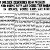 - 98th soldier describes how women and young boys are doing the work in France; Young lads are like men