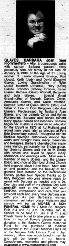 - Glaves, Barbara Joan (nee Flommerfelt)