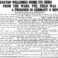 Queenston welcomes home its hero from the wars: Pte. Field was a prisoner in Germany 4 months