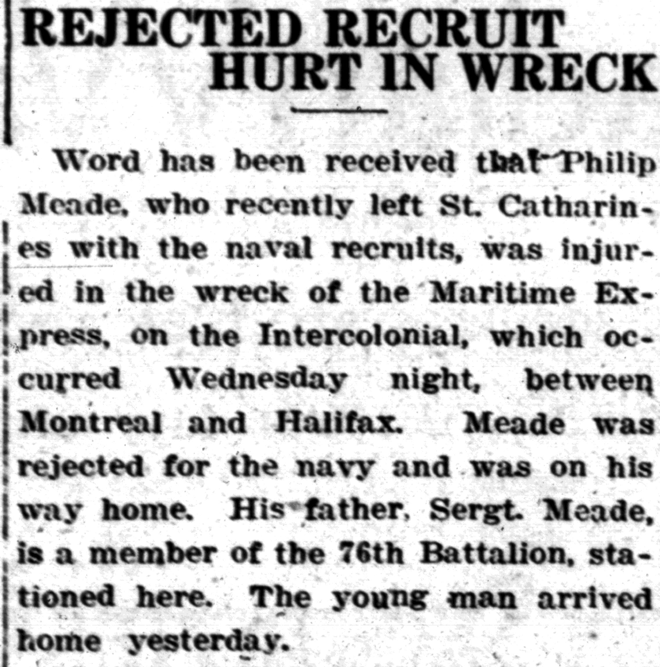 - en-CA Philip Meade / Naval recruits /Maritime Express / Intercolonial / Sergt. Meade / 76th Battalion