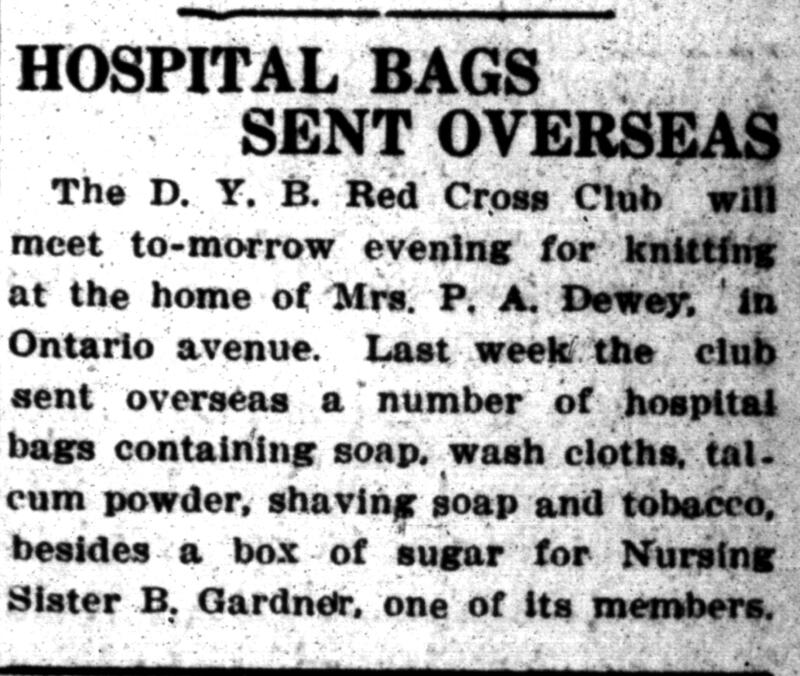 - en-CA D.Y.B. Red Cross Club / Mrs. P.A. Dewey / Nursing Sister B. Gardner