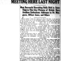 - Sixteen recruits for Royal Navy signed on at the meeting here last night