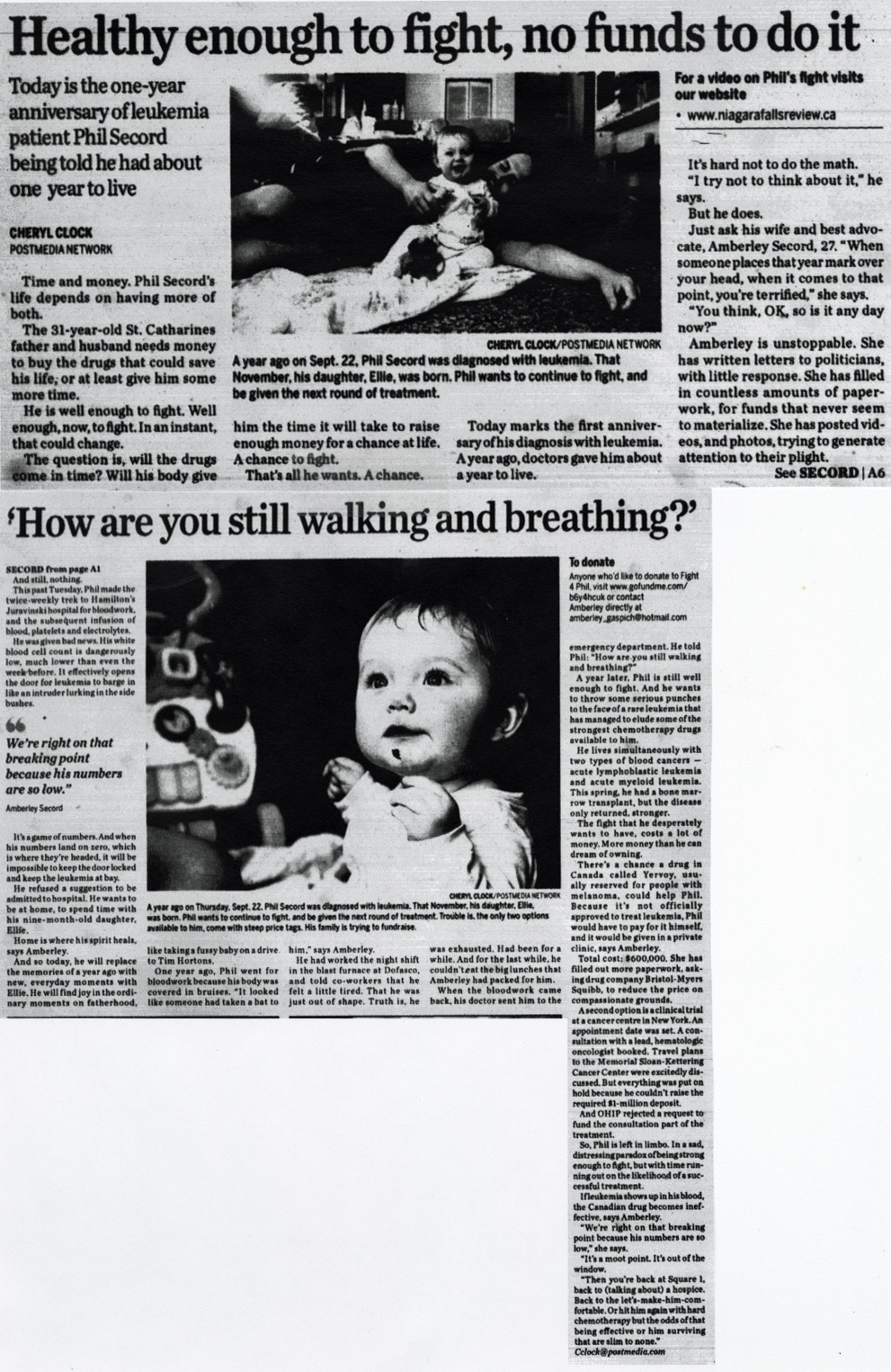 - Healthy enough to fight, no funds to do it : today is the one-year anniversary of leukemia patient Phil Secord being told he had about one year to live