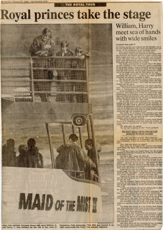 - Diana, Princess of Wales / Prince William / Prince Harry / Maid of the Mist / Smeaton, Bill / Smith, Julie / Fiocca, Debbie / Maiden, Nicole / Carrel, Mary / Schuyler, Captain Richard