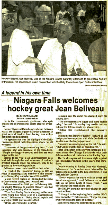 - Niagara Falls welcomes hockey great Jean Beliveau