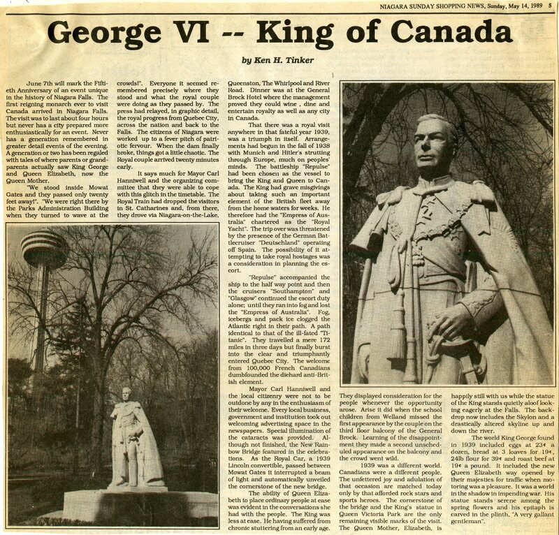 - King George VI / Queen Elizabeth / Royal tour / Hanniwel, Carl, mayor / General Brock Hotel