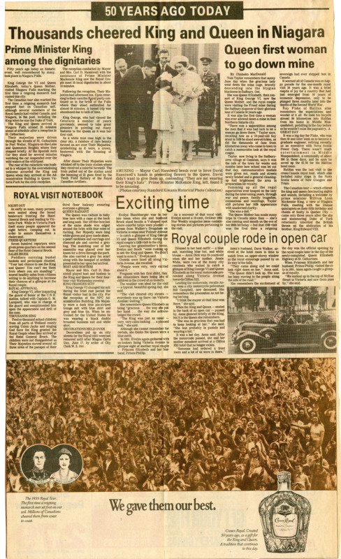 - King George VI / Queen Elizabeth / Hanniwell, Carl, Mayor / Hunchberger, Brock / Hunchberger, Evelyn / Lyon McKenzie King, William, Prime Minister