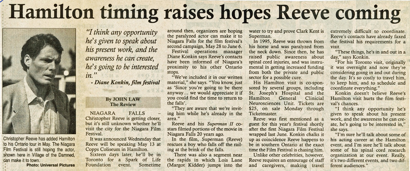 - Reeve, Christopher / Niagara Film Festival / Diane Konkin / Superman II / Margot Kidder / Hamilton