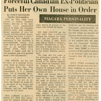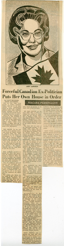 - LaMarsh, Judy / LaMarsh, W. Clayton / Twenty-Five to One / Canada Pension Plan / Centennial Party / Woman of the year