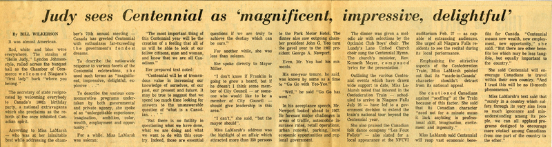 - LaMarsh, Judy / Miller, Mayor Franklin / Park Motor Hotel / Confederation Train / Canada's Centennial