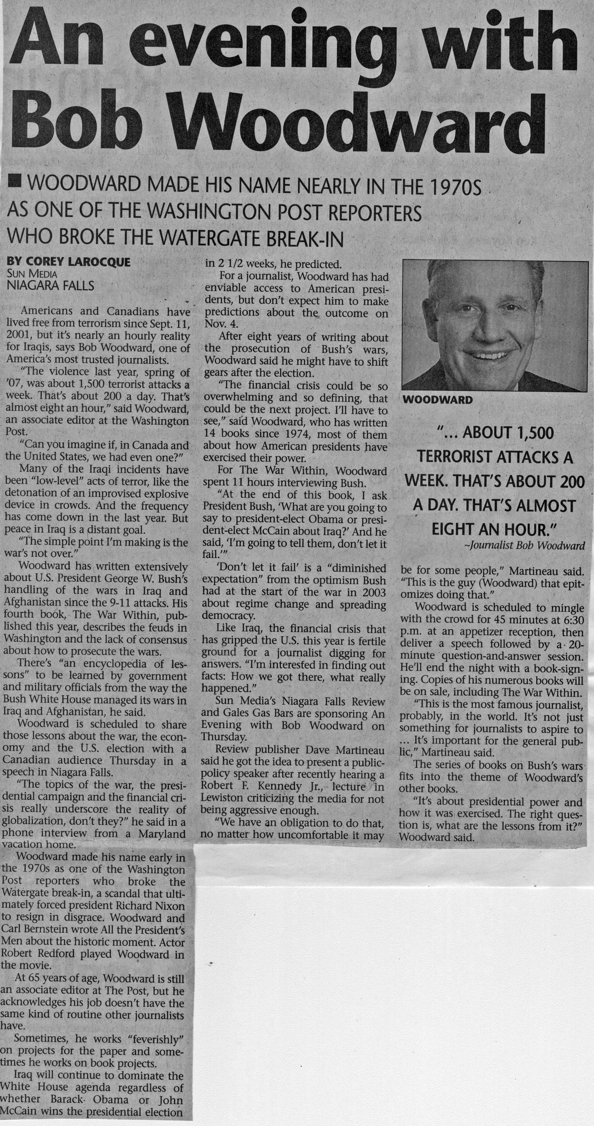 - Woodward, Bob / Bush, George W. / The War Within / Nixon, Richard / Bernstein, Carl / Sheraton on the Falls / Iraq