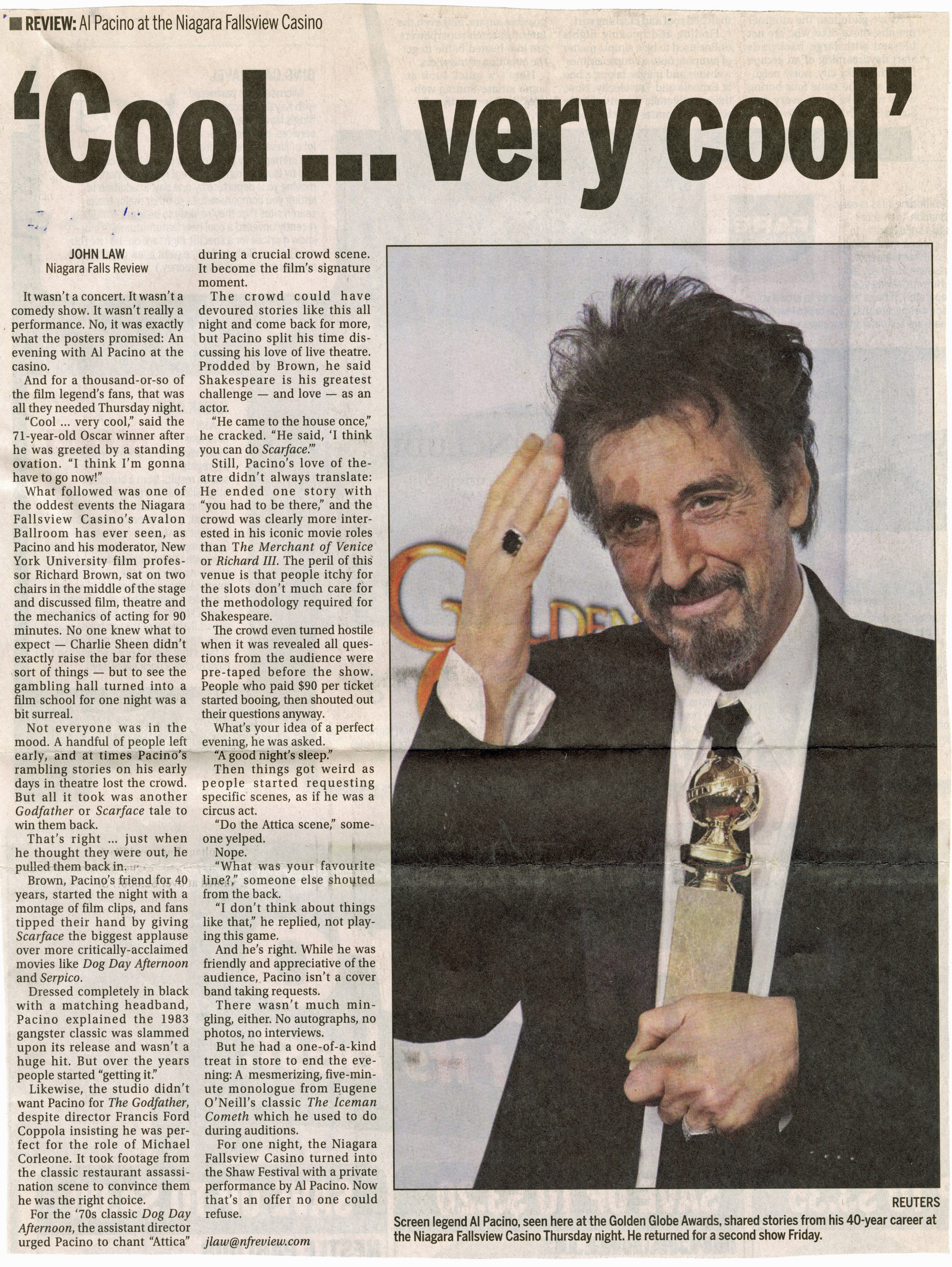 - Pacino, Al / Niagara Fallsview Casino / Avalon Ballroom / Brown, Richard / Godfather / Serpico / Scarface
