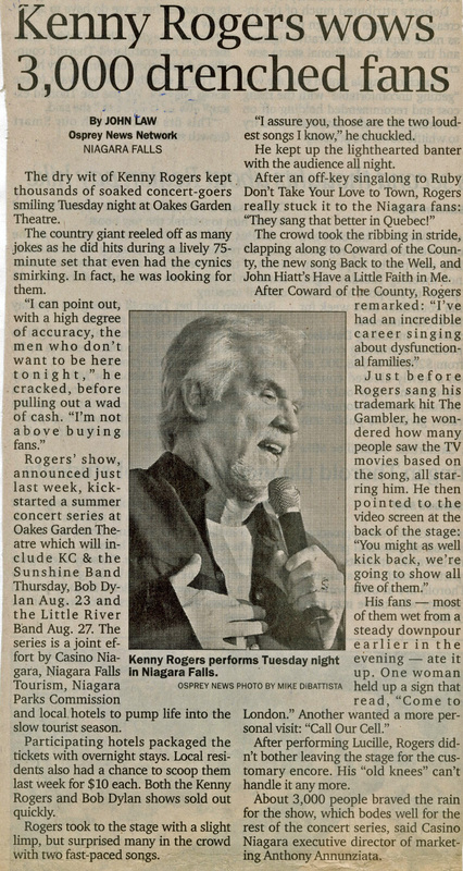 - Rogers, Kenny / Christmas & Hits Tour / Niagara Fallsview Casino / Avalon Ballroom /