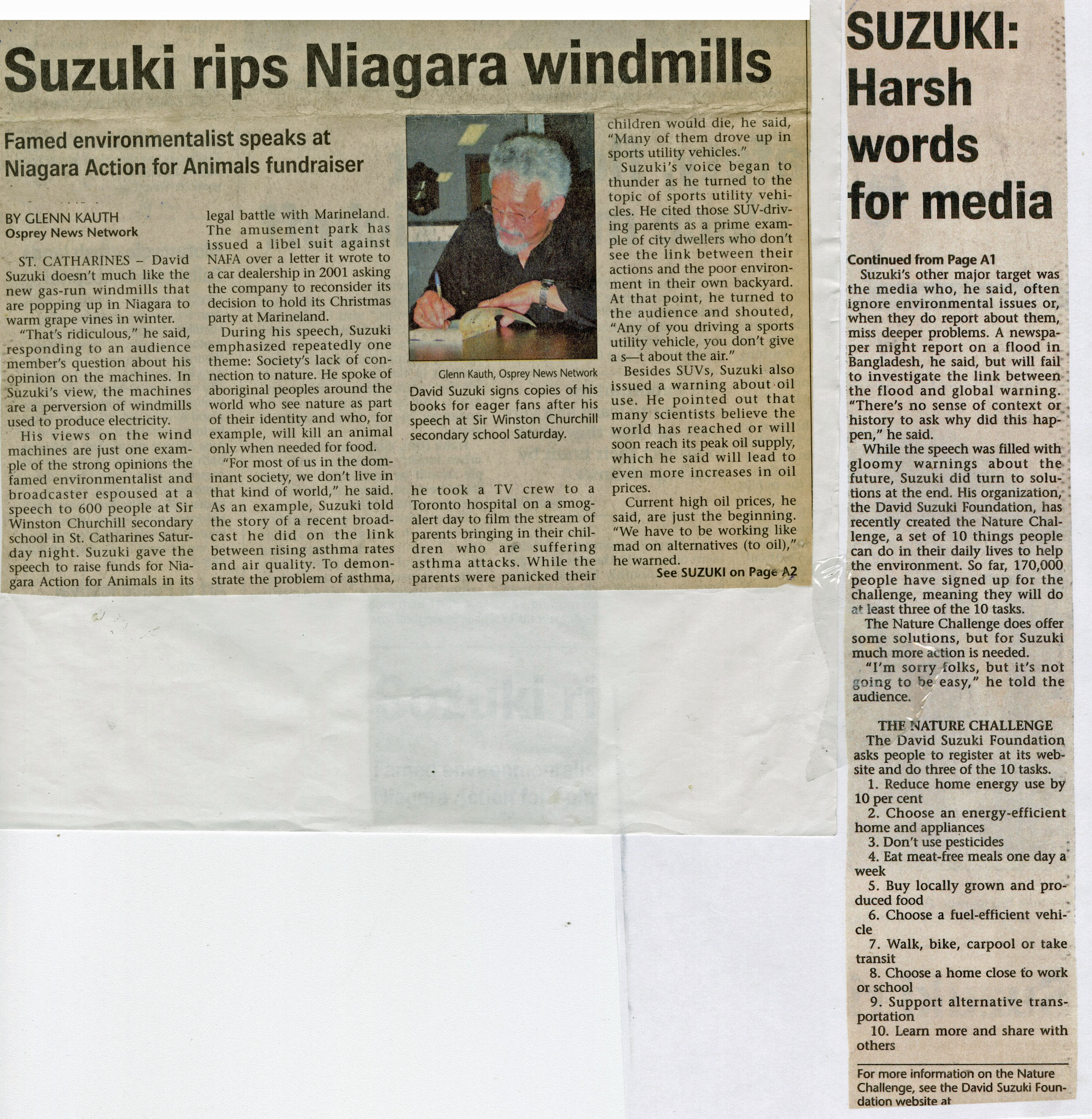 Suzuki, David / Niagara Action for Animals/