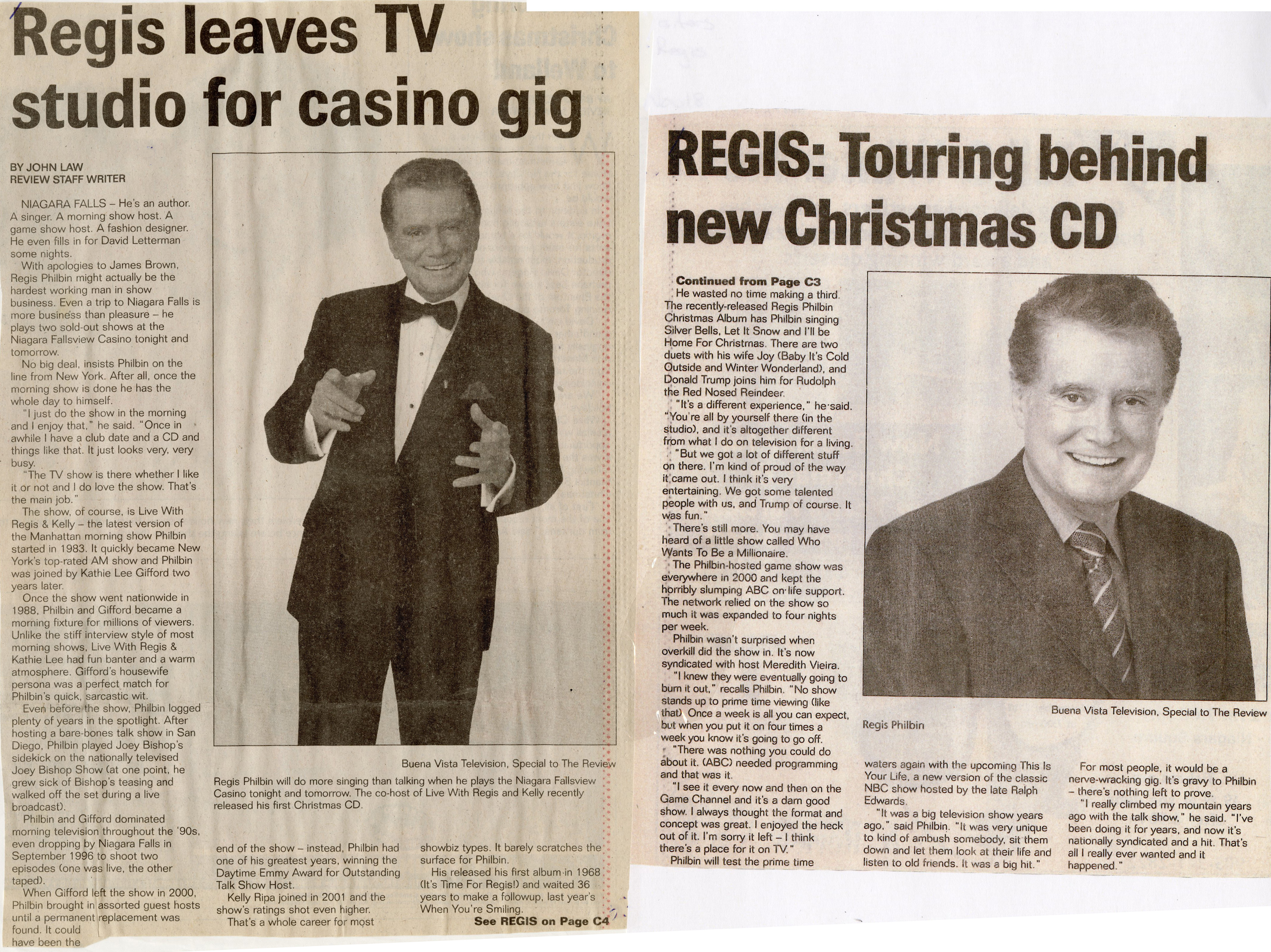 - Philbin, Regis / Niagara Fallsview Casino / Live with Regis & Kelly / Gifford, Kathie Lee / Philbin, Joy /Who Wants to be a Millionaire /
