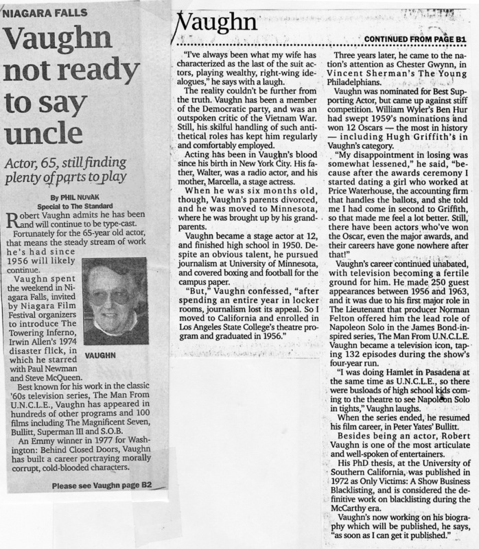 Vaughn, Robert / Niagara Film Festival / The Towering Inferno / The Man From U.N.C.L.E.