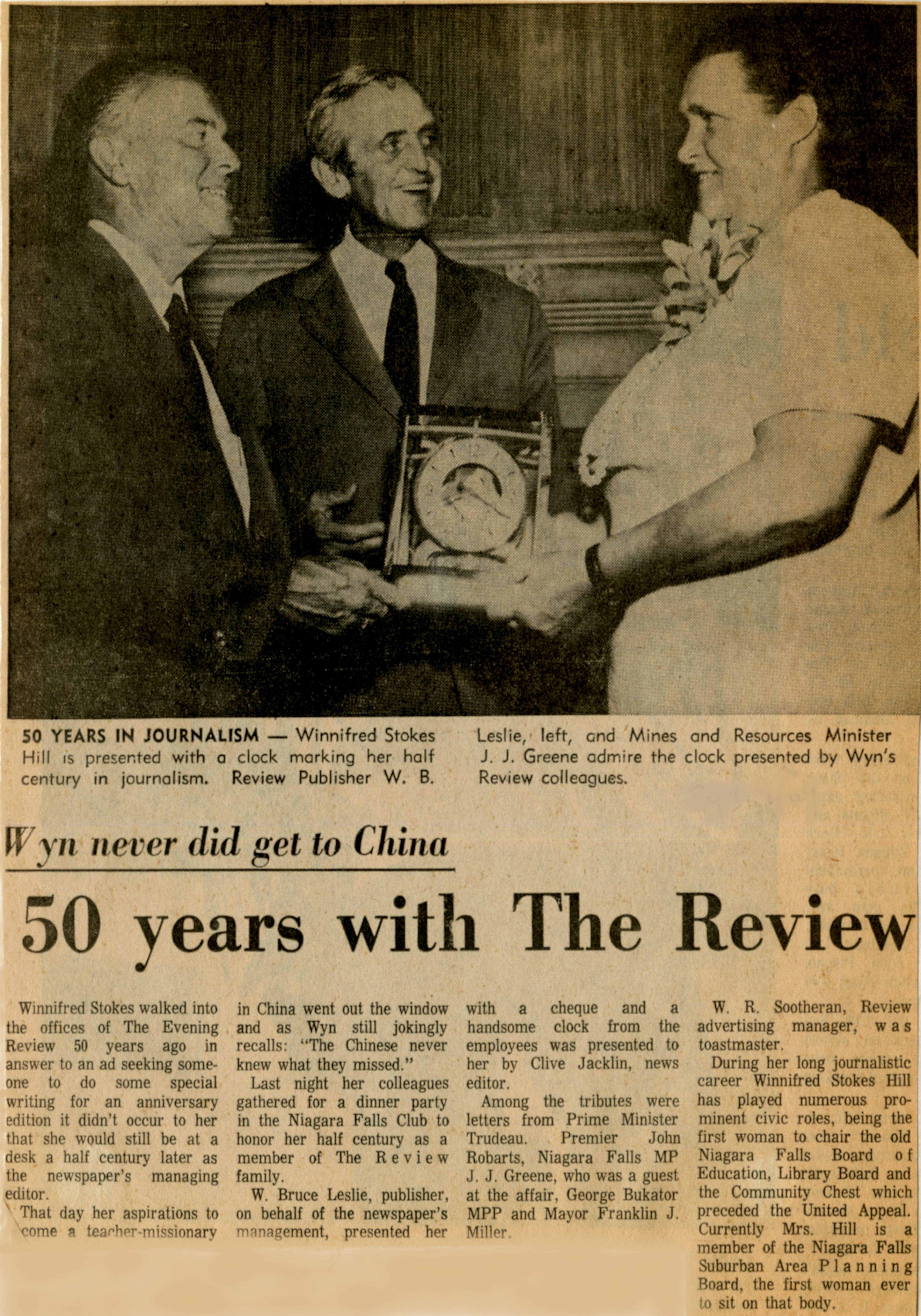 - Stokes Hill, Winnifred / Leslie, W. B. / Greene, J. J. Resources Minister / Niagara Falls Review