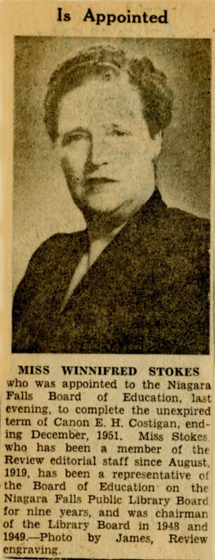 - Stokes, Winnifred / Niagara Falls Board of Education