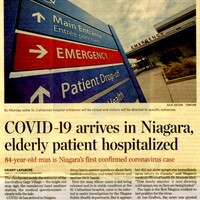 - COVID-19 arrives in Niagara, elderly patient hospitalized : 84-year-old man is Niagara's first confirmed coronavirus case