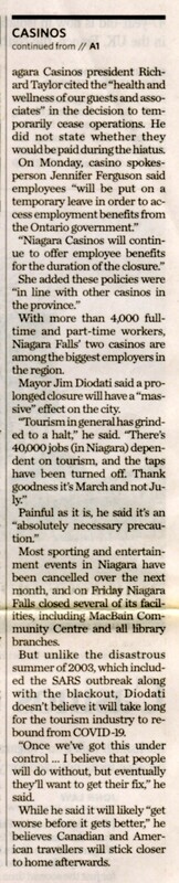 Casinos closed to control virus : Locksmith called to Niagara Falls because locks not used for years