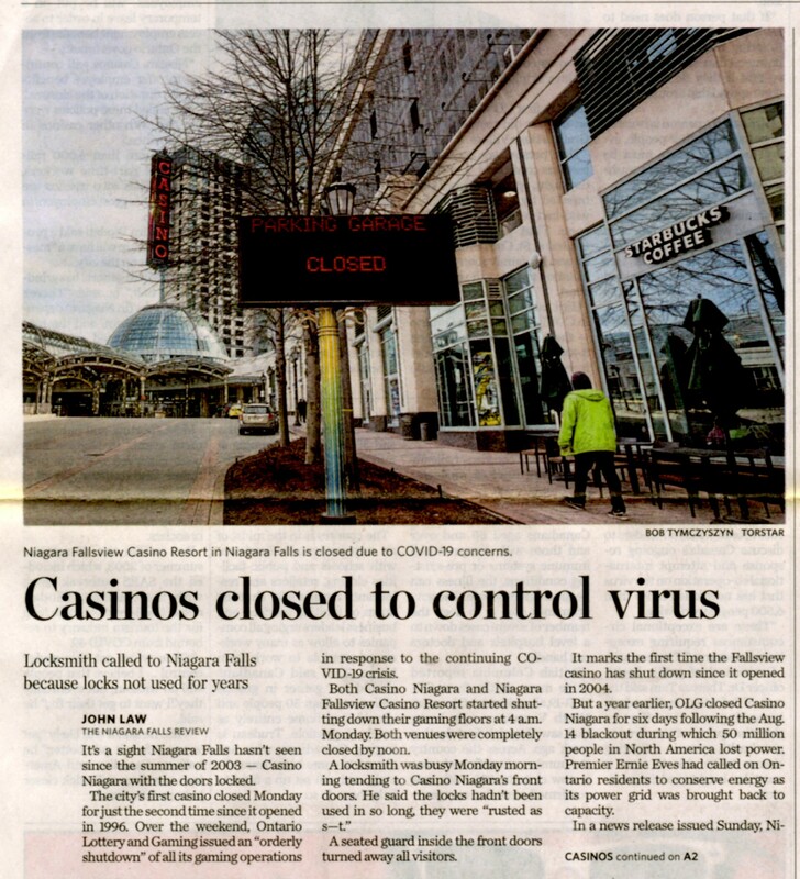 - Casinos closed to control virus : Locksmith called to Niagara Falls because locks not used for years
