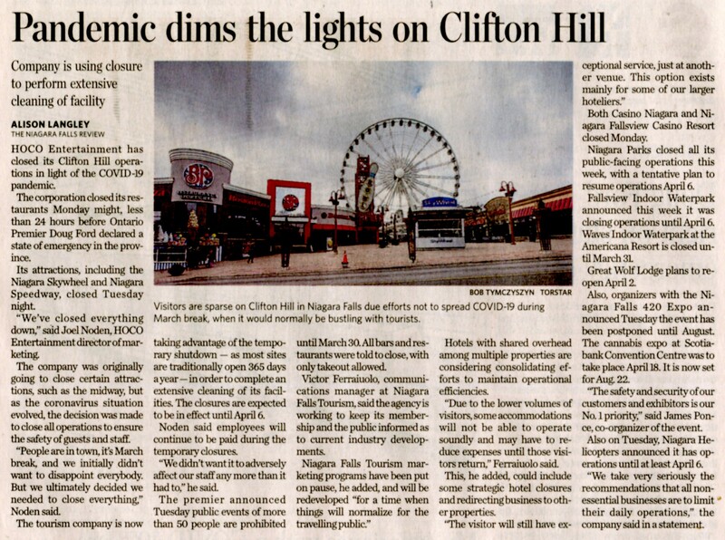 - Pandemic dims the lights on Clifton Hill : Company is using closure to perform extensive cleaning of facility