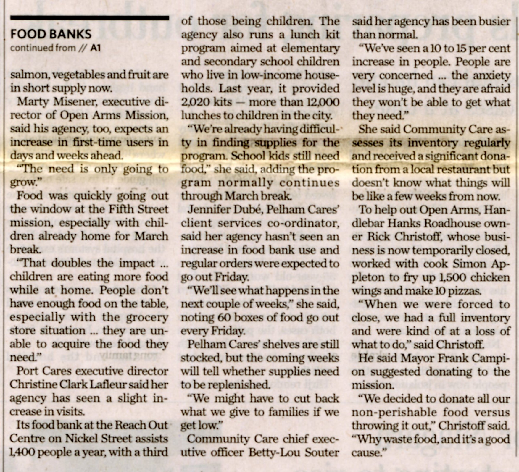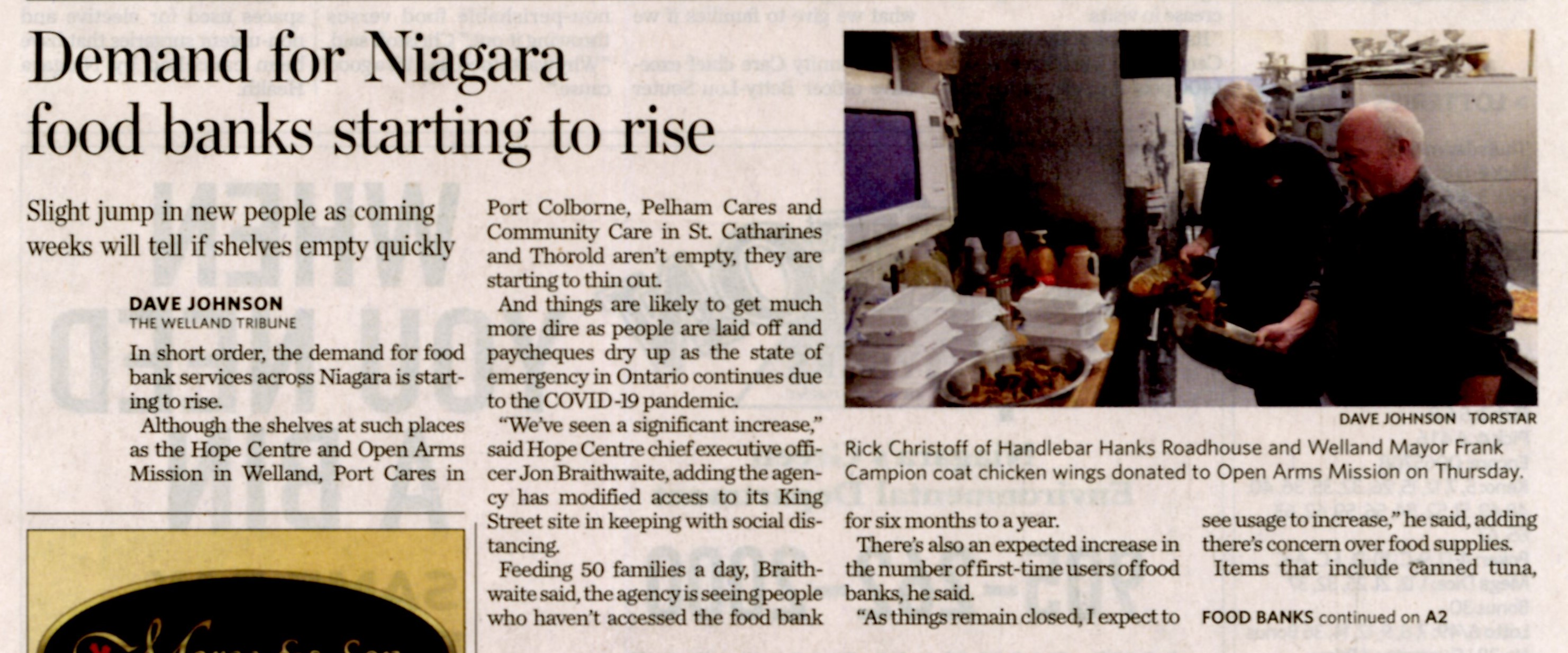 - Demand for Niagara food banks starting to rise : slight jump in new people as coming weeks will tell if shelves empty quickly