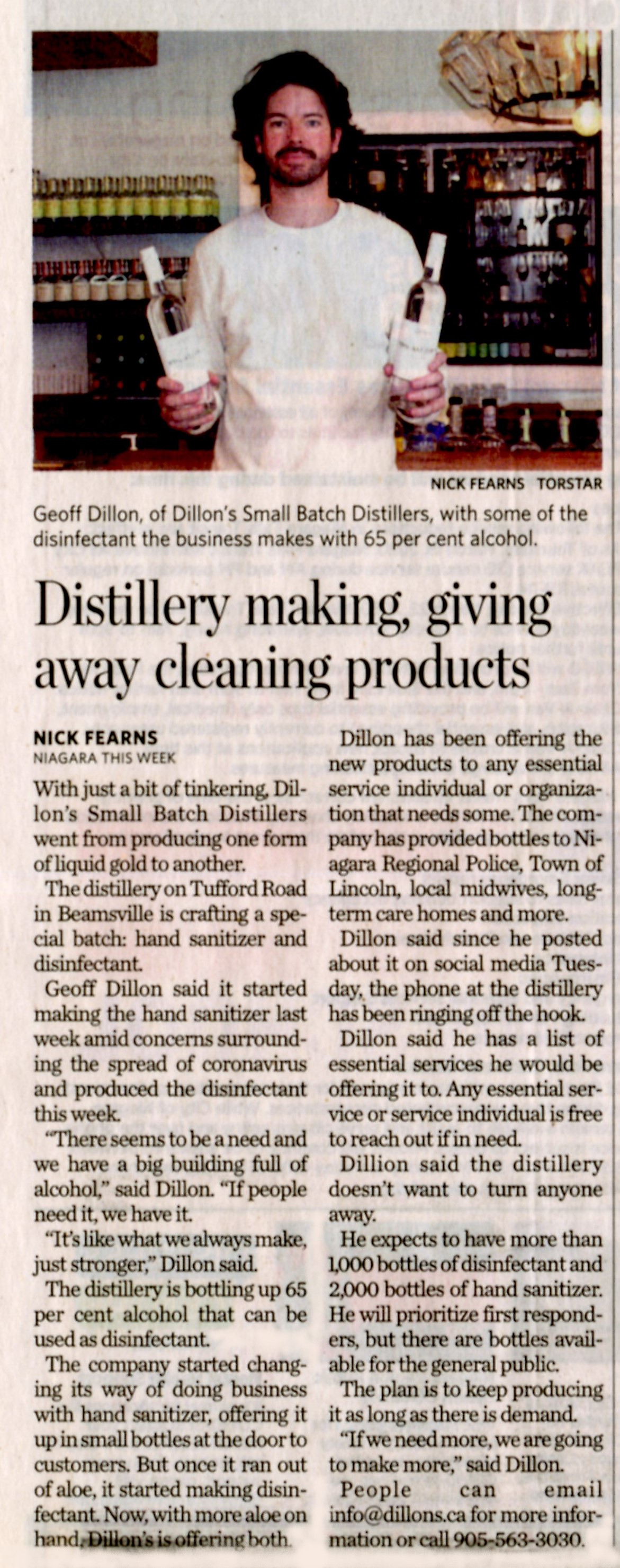 - Dillon, Geoff / Dillon's Small Batch Distillers / hand sanitizer / disinfectant
