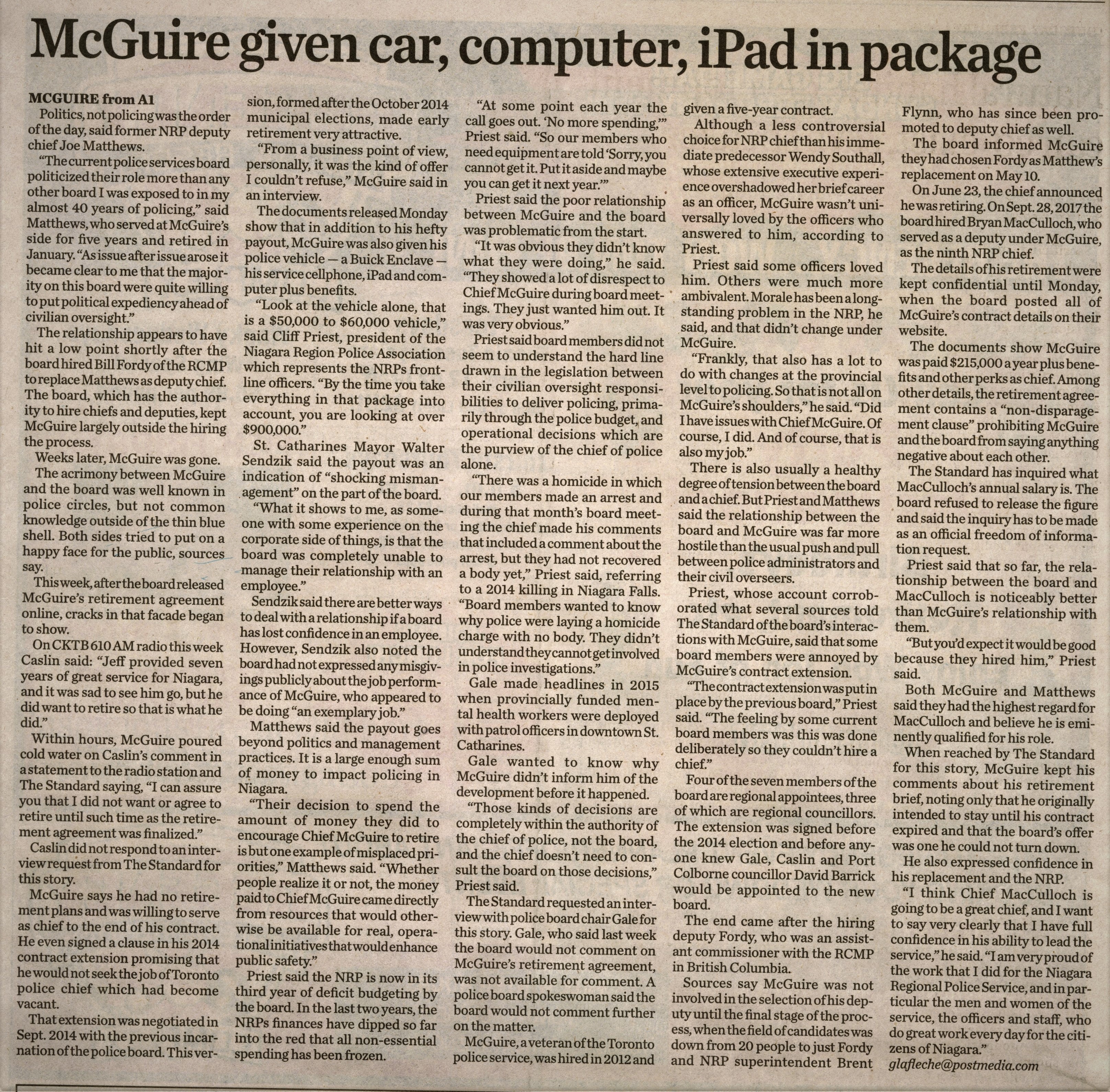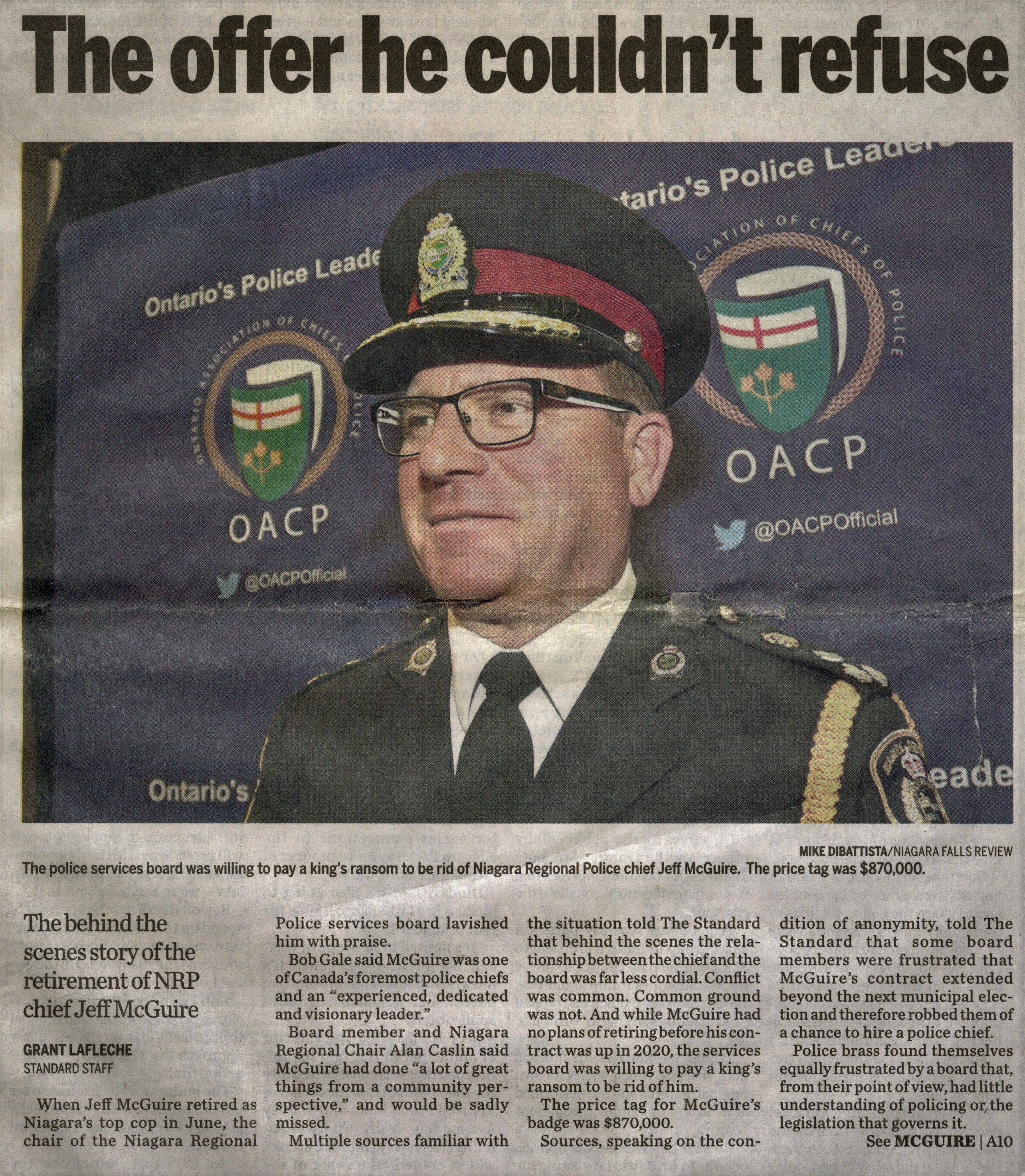 - The offer he couldn't refuse : the behind the scenes story of the retirement of NRP chief Jeff McGuire
