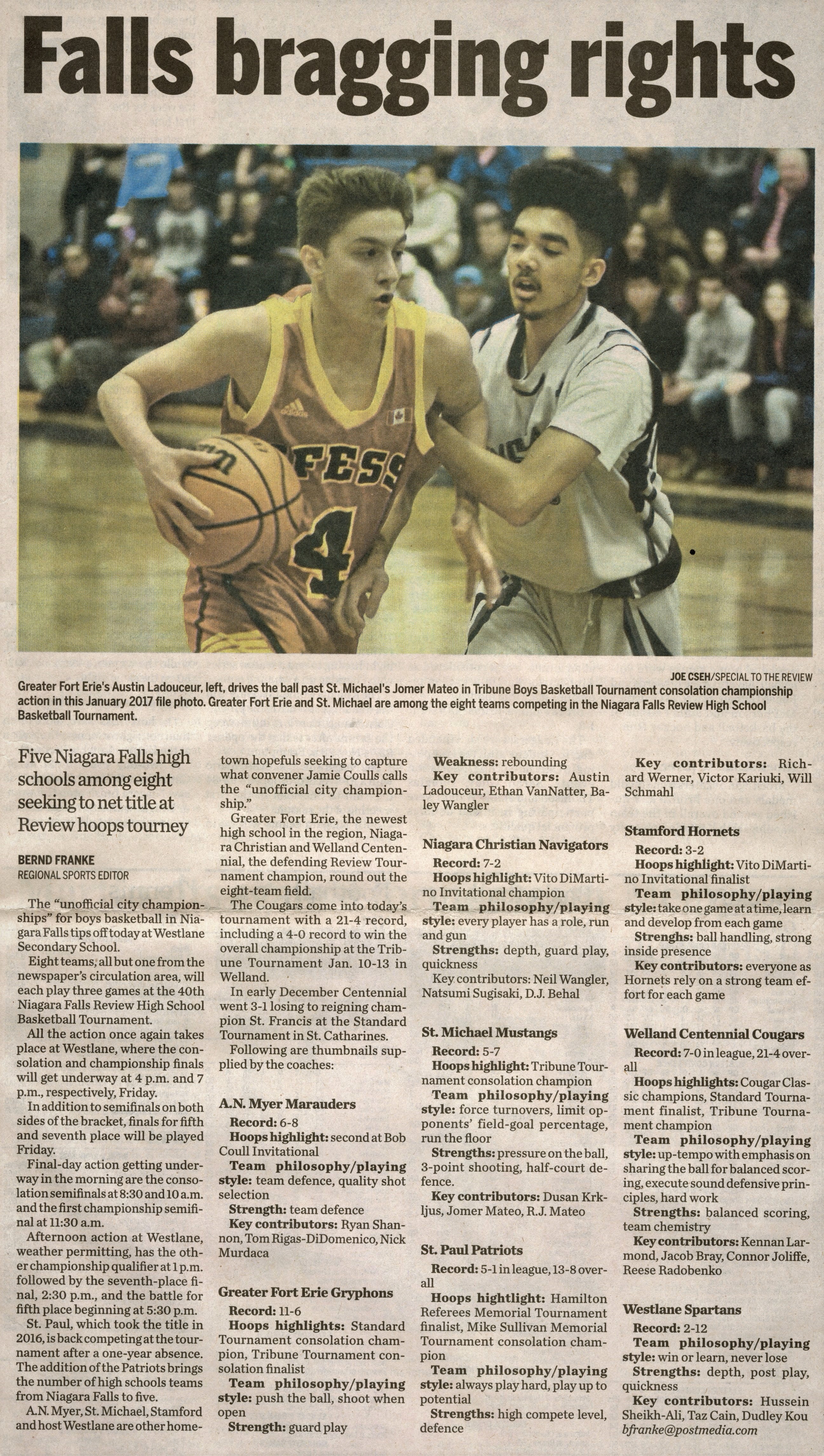 - Falls bragging rights : five Niagara Falls high schools among eight seeking to net title at Review hoops tourney