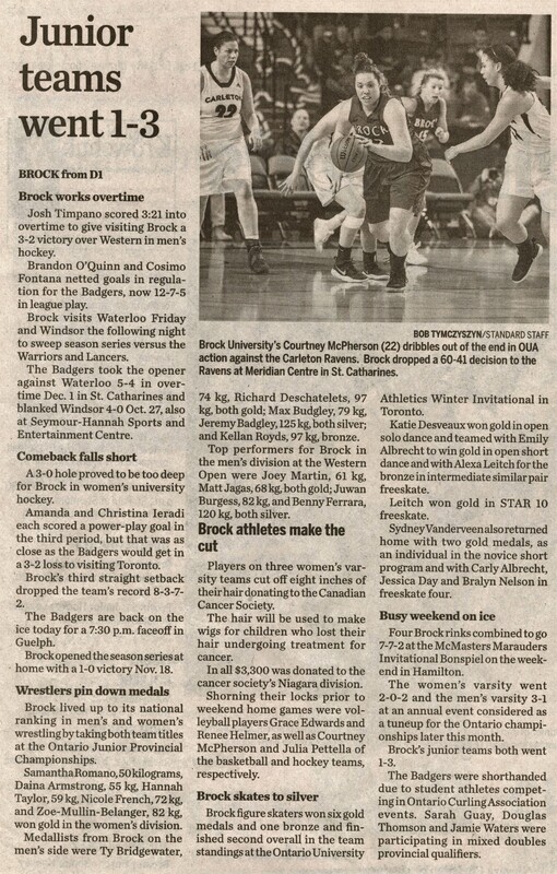Brock back on court : Badgers seek eighth win in a row in men's hoops : Brock wrestlers pin down medals at meet