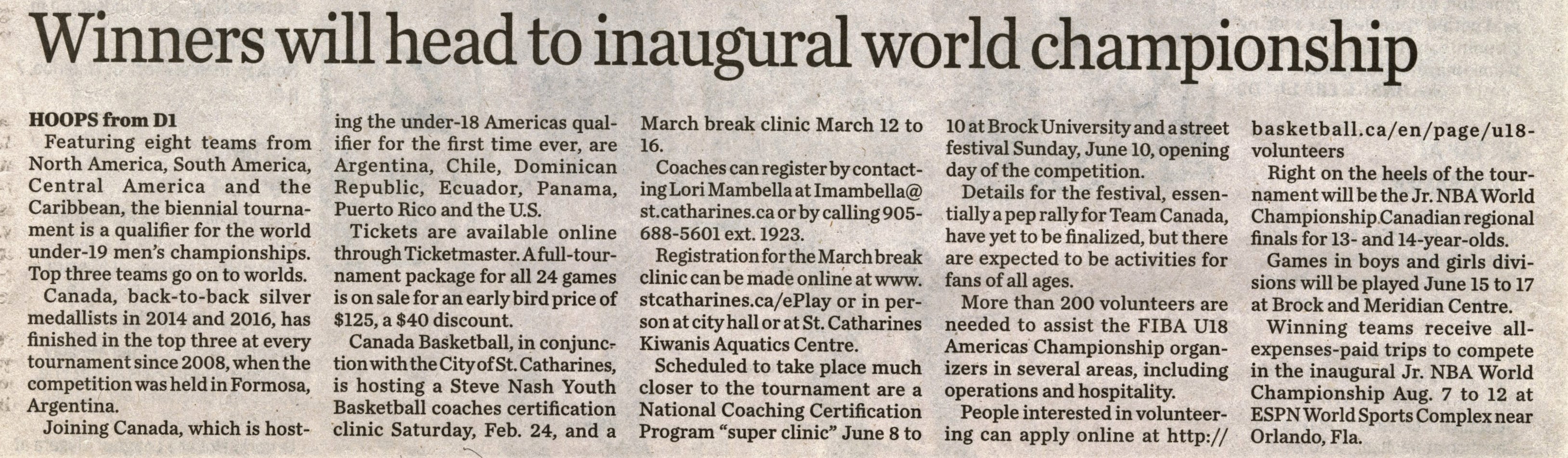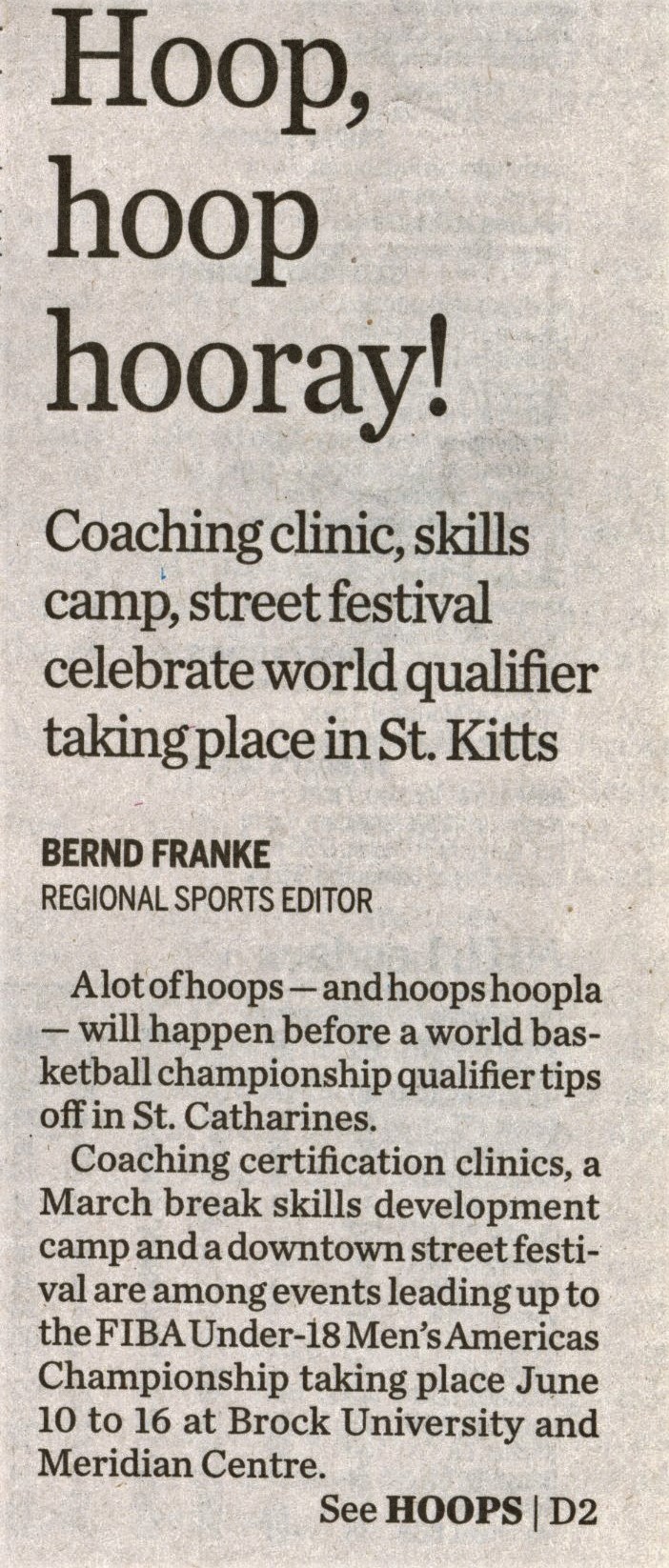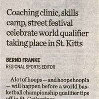 - Hoop, hoop hooray : coaching clinic, skills camp, street festival celebrate world qualifier taking place in St. Kitts