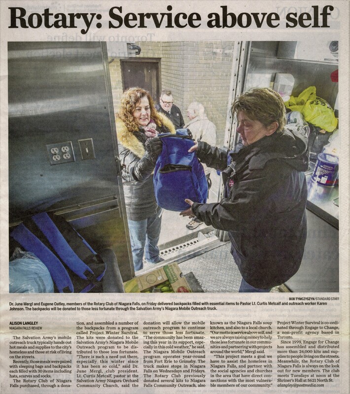 - Mergl, June, Dr. / Oatley, Eugene / Metcalf, Curtis / Johnson, Karen / Salvation Army Niagara Mobile Outreach program / Rotary Club of Niagara / Project Winter Survival