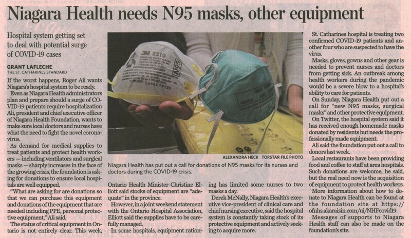 - Niagara Health needs N95 masks, other equipment : hospital system getting set to deal with potential surge of COVID-19 cases
